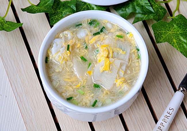- Sau cùng, thêm muối vừa ăn, rắc hành lá cắt nhỏ là có thể dùng được. Món canh củ mài trứng này rất bổ dưỡng và thơm ngon. Bạn có thể làm thường xuyên để bồi bổ lá lách, dạ dày và giữ cho cơ thể luôn khỏe mạnh. Ngoài củ mài, bạn có thể dùng khoai mỡ để nấu món canh này cũng thơm ngon và dễ ăn.