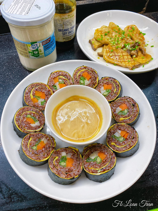 Sốt chấm cơm cuộn: 2 thìa ăn cơm mayonaise + 1,5 thìa cafe nước tương + 1 thìa cà phê tương ớt.