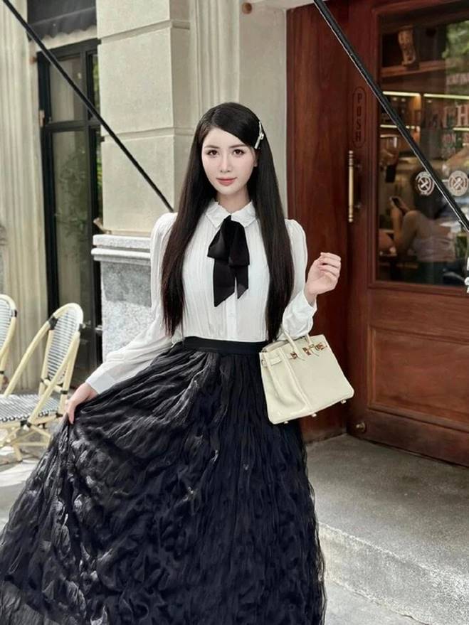 Chiếc áo lụa xếp ly phối cùng chân váy voan dáng dài giúp nàng công sở vừa sang trọng, thanh lịch vừa có nét đẹp mềm mại, dịu dàng của những cô tiểu thư.
