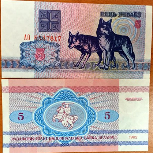 Trên thị trường hiện đang rao bán đồng tiền 5 Rúp của Belarus, một nước thuộc Liên Xô cũ, phát hành từ năm 1992, in hình 2 chú chó sói. Những người rao bán loại tiền này trên mạng khẳng định tờ tiền họ bán ra được lưu thông hợp pháp tại Belarus.