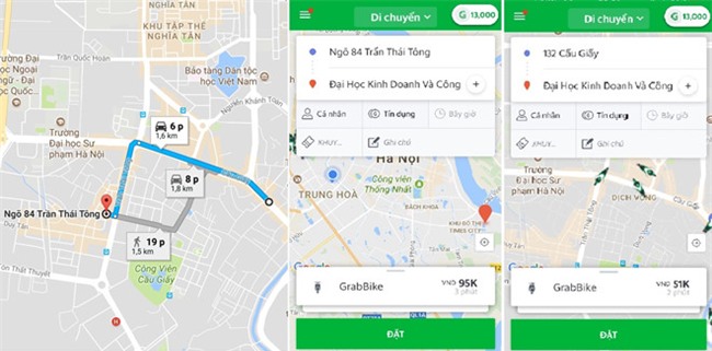 Tuy nhiên, nếu bắt GrabBike tại số 84 Trần Thái Tông đến Đại học Kinh doanh & Công nghệ thì mức phí là 95.000 đồng. Điều đáng nói, 2 địa điểm xuất phát chỉ cách nhau 1,6 km, số tiền chênh lệch lên tới 44.000 đồng.