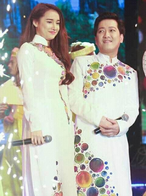 Ngoài street style, Áo dài cũng được Nhã Phương và Trường Giang phối hợp ăn ý.