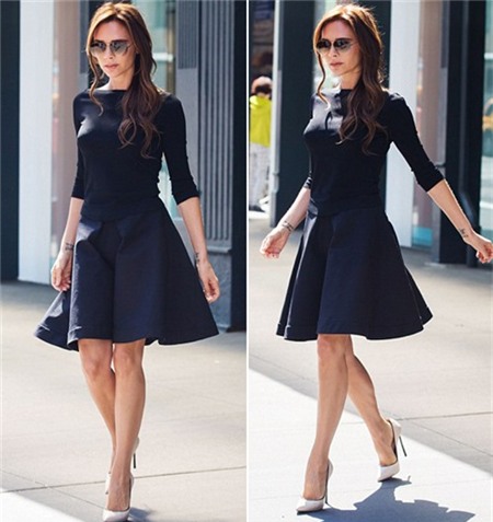 Khi diện những chiếc váy ngắn trông Vic chẳng khác gì một thiếu nữ.