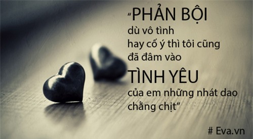 Em từng nói với tôi, em có thể bỏ qua mọi thứ nhưng phản bội thì không. Phản bội mãi mãi là thứ làm đau người khác và chẳng có lí do nào bao biện được. Phản bội - dù vô tình hay cố ý thì tôi cũng đã đâm vào tình yêu của em những nhát dao chằng chịt. Tôi không có tư cách để cầu xin em tha thứ sau những tổn thương đã tạo ra cho em. Vì thế, tôi lặng lẽ kí vào tờ đơn, giải thoát cho em khỏi nỗi đau mà tôi đã tạo ra.