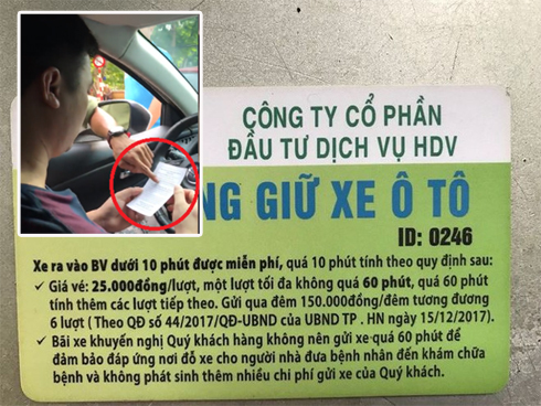 Thông tin rõ hơn về trường hợp gửi ô tô trong viện hơn 3 ngày hết 1,7 triệu đồng, đại diện Bệnh viện Nhi Trung ương nói trên báo Đất Việt, nhà xe thu theo quyết định của TP Hà Nộ, bất kể ô tô nào vào đây, trừ xe của nhân viên, nhà xe đều cung cấp vé xe bằng thẻ từ và 1 tờ giấy A5 ghi rõ nội quy để xe.