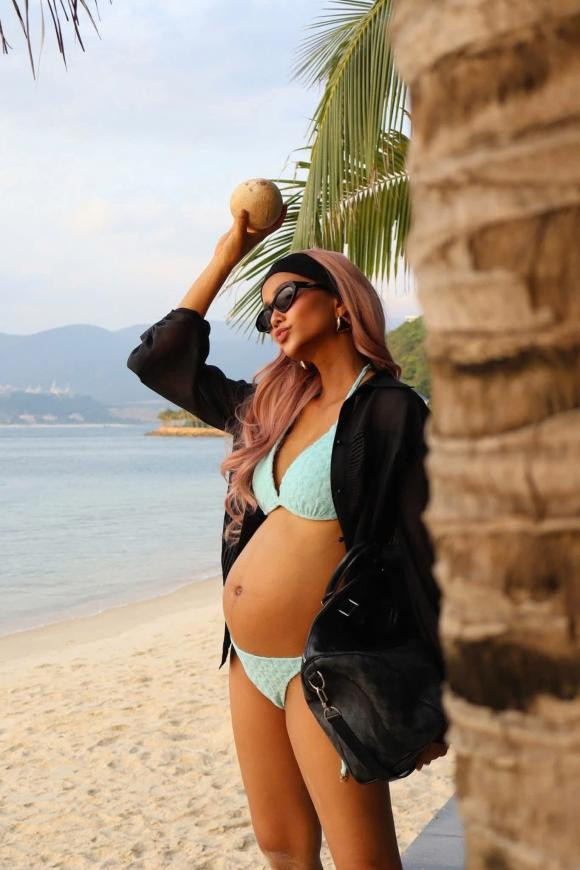 H'Hen Niê tự tin thả dáng trên biển với chiếc bụng bầu xinh xinh.