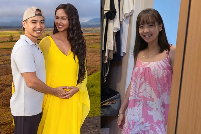 Dưới phần bình luận, một tài khoản thẳng thắn bình luận: "Khai thật đi, có phải quần của ông Khôi không" và nhận được lời thú nhận từ nàng hậu: "Haha, vài tháng nữa em sinh rồi, mua đồ mới uổng lắm nên mặc tạm quần giãn chun của chồng".