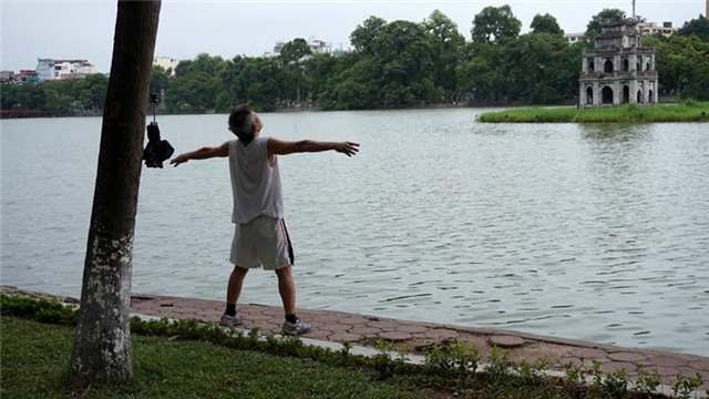 Tập thể dục ở Hồ Gươm trong tiết trời mát mẻ. Ảnh: Lê Anh Dũng