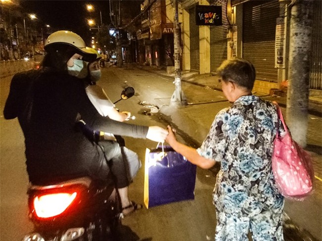 Hà Hồ được chở bằng xe máy đi tới nhiều quận ở TP.HCM để tặng quà cho người vô gia cư. Ảnh:TT.