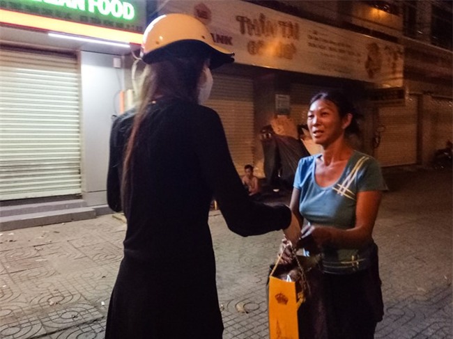 Từ nửa đêm 19/1 đến rạng sáng hôm sau, Hồ Ngọc Hà cùng ê-kíp hơn 10 người đi dọc theo nhiều tuyến đường ở TP.HCM để tận tay trao quà tết, lì xì cho những mảnh đời cỡ nhỡ, vô gia cư.