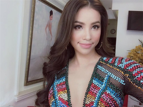 Phạm Hương cũng theo xu hướng thời trang không mặc áo ngực. Vẻ đẹp sang trọng, gợi