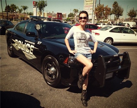 Nguyễn Cao Kỳ Duyên nhìn cực kỳ bụi bặm với áo thun tay lỡ, phối cùng short jeans và combat boots.