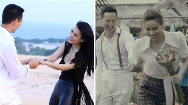 Hay cảnh kéo tay nhau nô đùa đầy tình ý của Trương Ngọc Ánh và Kim Lý ngoài đời thực, dường như cũng được tái hiện lại bằng phiên bản ca sĩ Ngọc Hà.