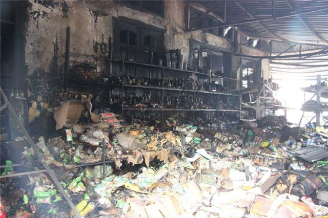 Ngọn lửa bất ngờ bùng phát từ cửa hàng kinh doanh sữa sau đó lan nhanh sang cửa hàng kinh doanh giầy dép và quần áo bên cạnh. Chỉ trong chốc lát ngọn lửa đã bùng lên dữ dội và thiêu rụi nhiều đồ đạc tại 3 cửa hàng.