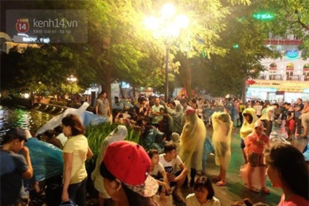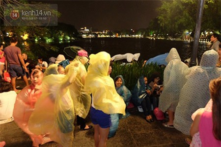 Ai cũng phải sắm cho mình 1 chiếc áo mưa để có thể tiếp tục chờ đợi xem pháo pháo hoa. |