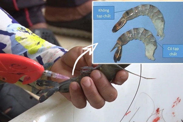 Bơm tạp chất vào tôm - Ảnh: ANH TUẤN