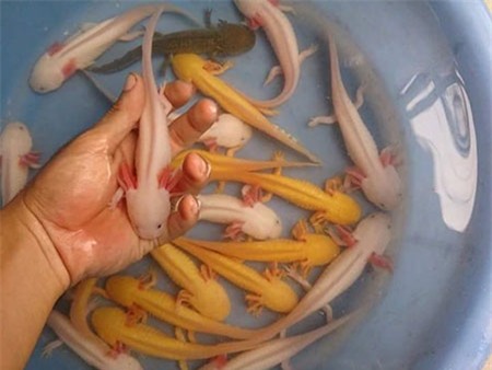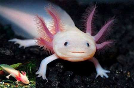 Loài vật đó là giông Axolotl (Ambystoma mexicanum), một loài lưỡng cư có xuất xứ từ đất nước Mexico. Cá có hình thù kỳ quái với 6 mang, 4 chân, chính vì thế khi về Việt Nam, dân chơi cá cảnh gọi với cái tên “khủng long 6 sừng”. Axolotl cũng có họ hàng với loại kỳ nhông hổ nên còn có tên gọi khác là “kỳ nhông nước”.
