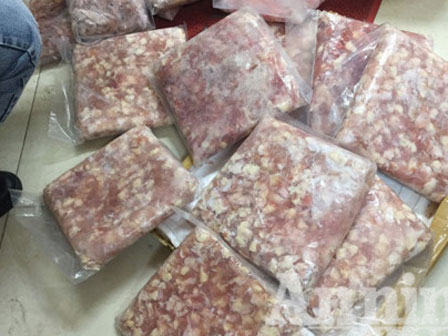 Các loại thực phẩm đông lạnh được phát hiện trong thùng xe container. Ảnh: CAHN