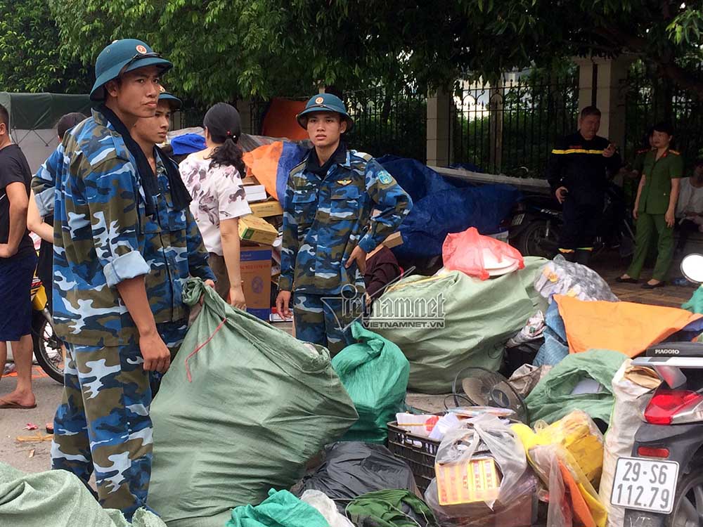 Các lực lượng chức năng giúp bà con tiểu thương vớt vát chút tài sản ra khỏi đám cháy. Ảnh: Đoàn Bổng