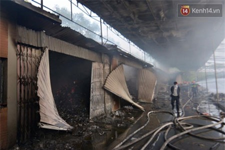 Tại hiện trường, khu vực để hàng hoá rộng khoảng 1000m bị lửa thiêu rụi gần như toàn bộ. Mảnh kính nứt vỡ gây khó khăn cho lực lượng chức năng tiếp cận chữa cháy. Ngoài sử dụng tăng cường xe tiếp nước của công ty môi trường đô thị, lực lượng chữa cháy còn sử dụng máy bơm công suất cao để hút nước từ hồ nước trong khuôn viên trường THPT Nguyễn Văn Cừ.