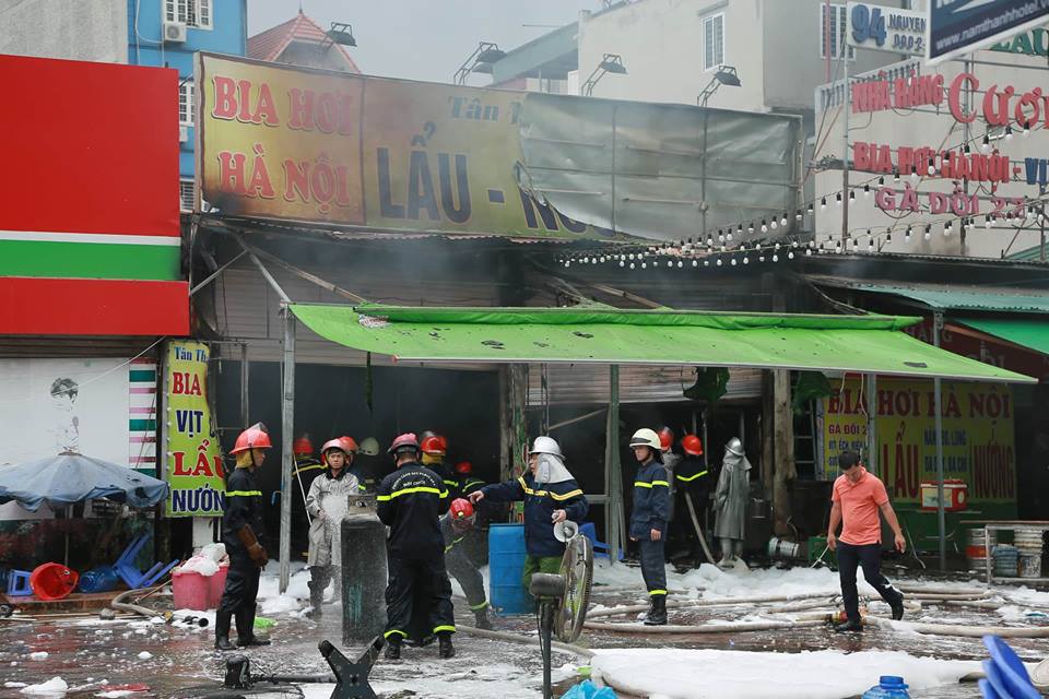 Theo các nhân chứng, ngọn lửa phát ra từ khu bếp của nhà hàng lẩu vịt, bia hơi.