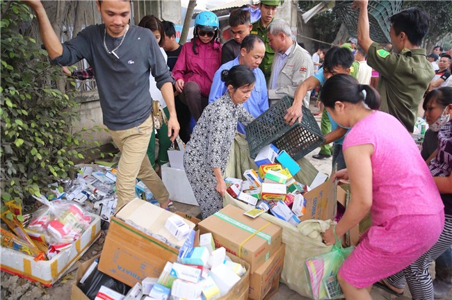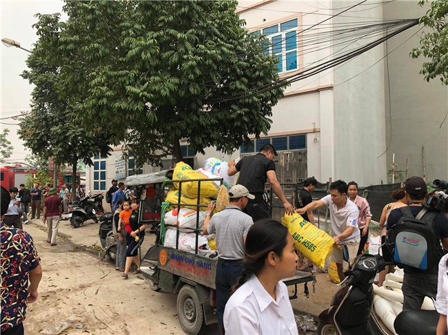 Người dân lao vào cứu hàng hóa. Clip: Bá Cường.