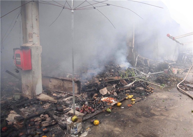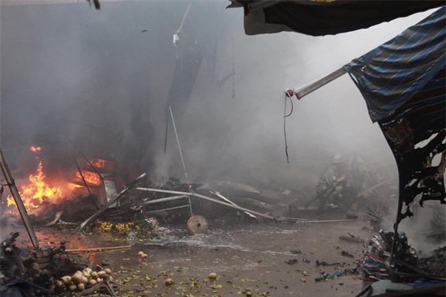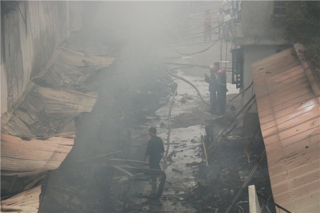 Vụ cháy đã gây thiệt hại nhiều cho các tiểu thương ở chợ Quang. Hiện vẫn chưa biết được nguyên nhân vụ cháy. Ảnh: Phương Thảo.