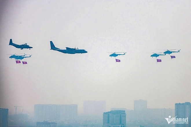 Tiêm kích, trực thăng rầm rộ bay trên bầu trời Hà NộiSáng nay, tại sân bay Hòa Lạc, 10 chiếc trực thăng Mi-8, Mi-17, Mi-171 và Mi-172, máy bay vận tải Casa của Không quân Việt Nam cất cánh bay vào trung tâm TP Hà Nội...