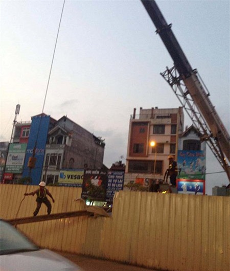 Vào thời điểm trên, khi các công nhân đang thi công tuyến đường sắt trên cao Nhổn – ga Hà Nội tại khu vực Cầu Diễn hướng từ Nhổn đi Cầu Giấy (Hà Nội) thì bất ngờ một thanh sắt 'khủng' dài hơn 10m tuột cáp cẩu, rơi xuống đường trong khi có rất nhiều phương tiện đang lưu thông.