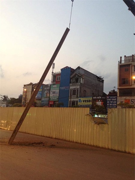 Ngay sau khi xảy ra sự việc các công nhân đã nhanh chóng dùng cần cẩu khắc phục đưa thanh sắt vào bên trong.