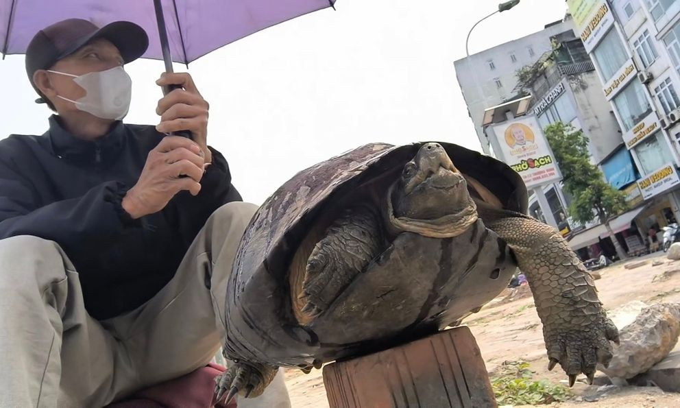 Từ nhiều tuần nay, trên nhiều con phố ở Hà Nội xuất hiện một người đàn ông bịt kín khẩu trang, trước mặt người này bày bán một con rùa. Đáng nói, sau rất nhiều ngày, người đàn ông vẫn với bộ quần áo và vẫn một con rùa được bày bán nhưng thường thay đổi địa điểm và xuất hiện ở các địa bàn khác nhau.