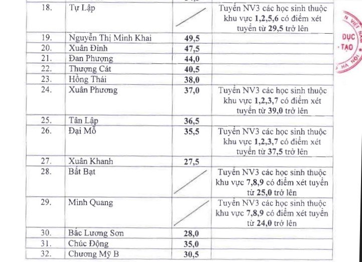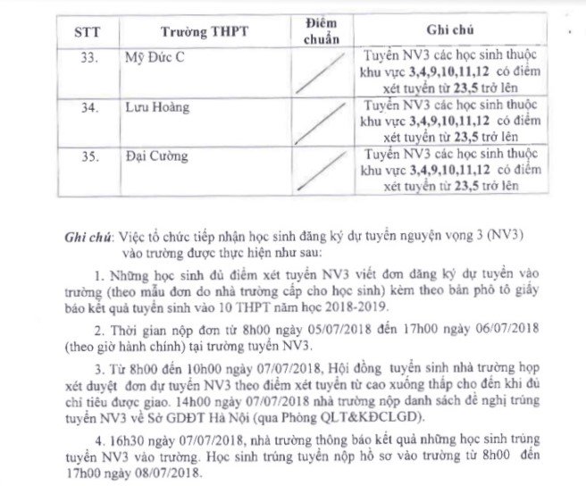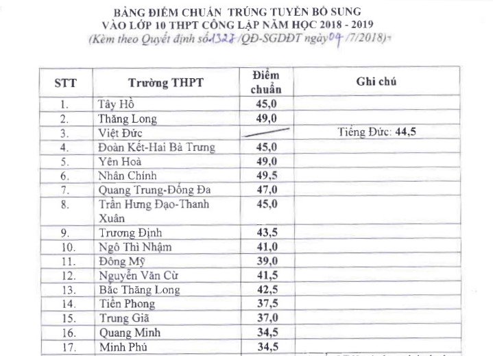 Cụ thể, mức điểm chuẩn bổ sung vào lớp 10 các trường THPT công lập trên địa bàn Hà Nội năm học 2018-2019 được điều chỉnh như sau: