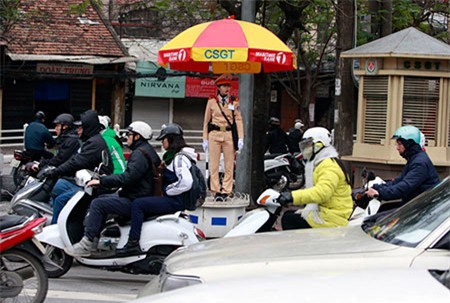 Đại tá Đào Vịnh Thắng - Trưởng phòng CSGT Hà Nội cho biết mỗi ngày có 700 CSGT trực 24/24, vừa làm nhiệm vụ tuần tra, vừa chốt trực phân luồng giao thông tại 361 nút giao trọng điểm của Thủ đô để đảm bảo đi lại thông suốt.
