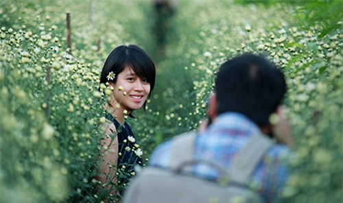 Thiếu nữ Hà thành dịu dàng bên cúc họa mi.