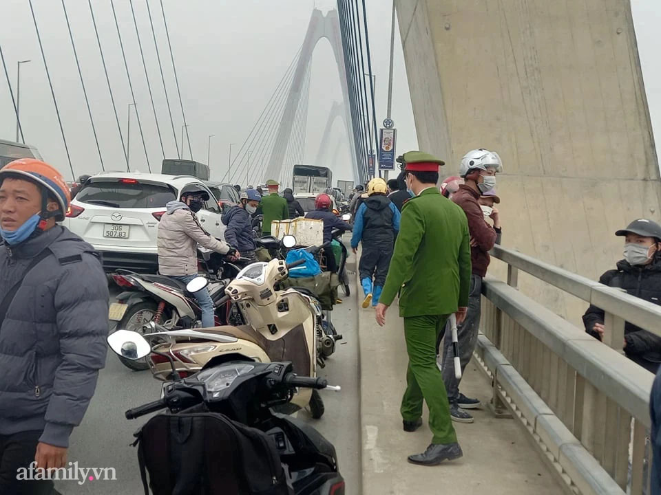 Trong quá trình mọi người khuyên bảo, nam thanh niên cho biết có bạn hiện đang làm ở đường Láng. Lúc này, một số người đàn ông ngồi trên thành cầu ngay lập tức gọi điện cho người bạn của thanh niên này và tiếp tục khuyên nhủ. Tuy nhiên, nam thanh niên vắt vẻo ở lan can rồi bỏ thuốc lá điện tử ra hút.