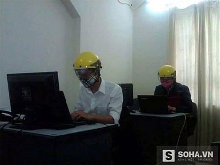 Một vài người làm việc tại tòa nhà này phải đội mũ bảo hiểm... |