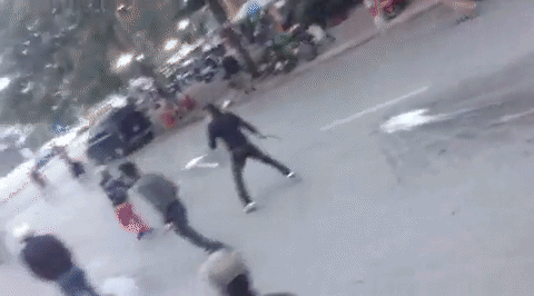 nhóm thanh niên khoảng hơn 10 người cầm dao, kiếm, xẻng rượt đuổi nhau