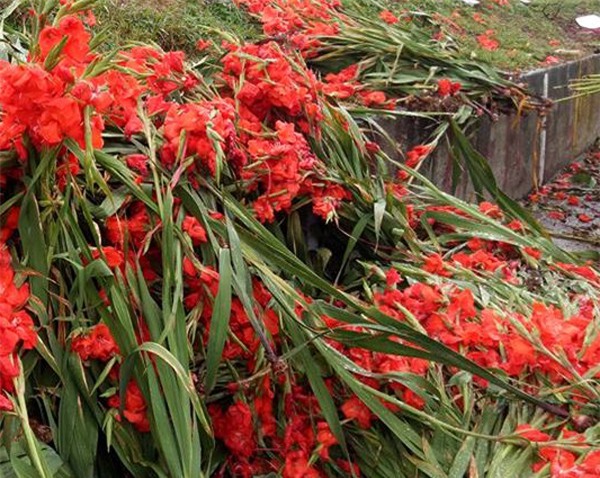 Theo ghi nhận của chúng tôi tại chợ hoa Quảng An (Tây Hồ - Hà Nội) một vài ngày nay xuất hiện việc các tiểu thương đành ngậm ngùi vứt bỏ hàng trăm bó hoa lay ơn ra đường dù còn tươi, đẹp do giá rớt thảm, không có người mua.