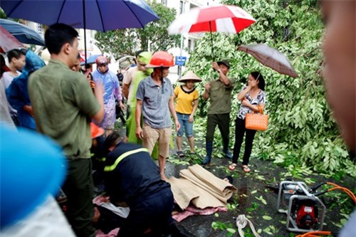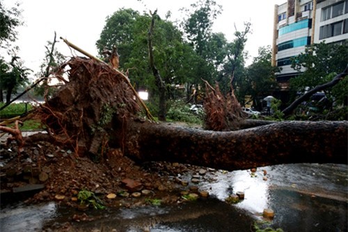 Cây đổ đè vào nhà tại ngã tư phố Huế giao cắt Đoàn Trần Ngiệp gây mất điện