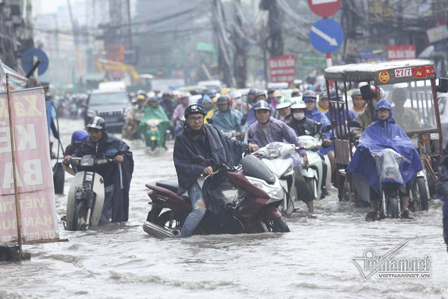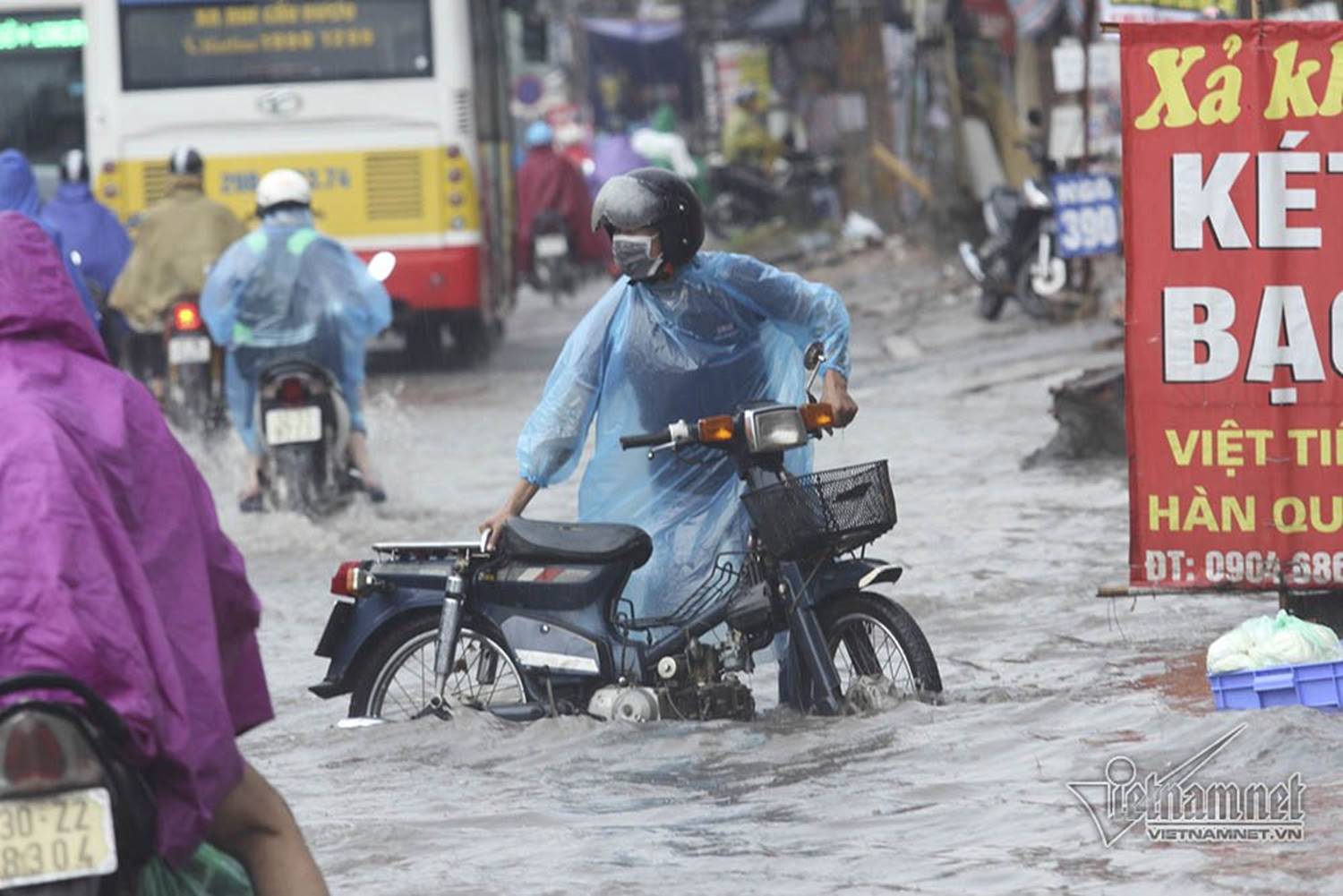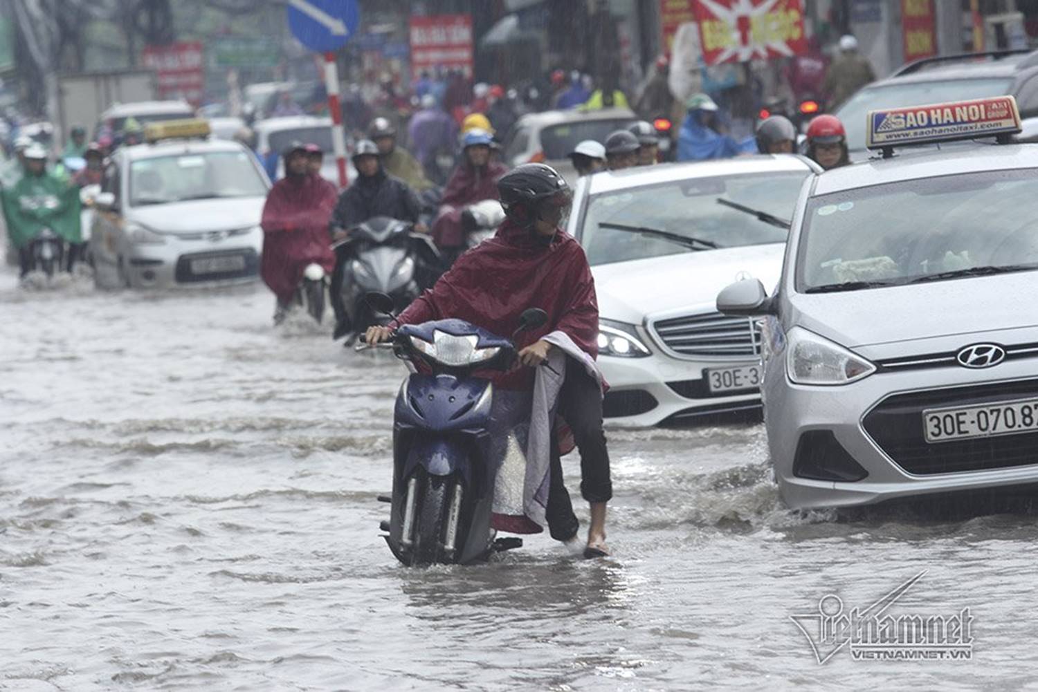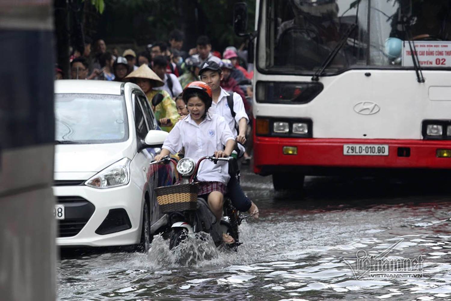 Do mưa lớn gây ngập úng, lại vào đúng giờ học sinh ra về, trong khi đường Vũ Trọng Phụng nhỏ hẹp, có lượng xe cộ qua lại khá đông nên xảy ra tình trạng ùn tắc ở đoạn giữa