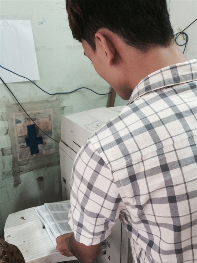 Tại một cửa hàng photo ở ngõ 336 Nguyễn Trãi (Hà Nội), khi chúng tôi hỏi về “phao thi”, chủ cửa hàng nhìn tôi từ đầu đến chân rồi lắc đầu bảo “không có”. Tuy nhiên, khi chúng tôi ngỏ ý muốn photo và thu nhỏ vở ôn thi để “dự phòng”, chủ cửa hàng này ngần ngừ rồi gật đầu đồng ý nhưng với điều kiện “giá sẽ cao đấy nhé”.