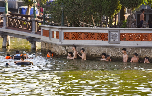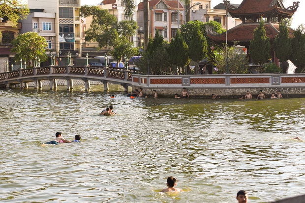 Người dân trong xã coi đây là bể bơi công cộng lớn nhất vùng nên lúc nào cũng có người ra bơi từ sáng đến chiều, đông nhất vào khoảng 4 - 5h chiều