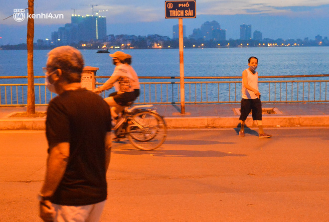 Bà H., một người dân tập thể dục cho biết, sở dĩ bà đi tập thể dục vào lúc sáng sớm để không bị công an nhắc nhở. "Những hôm trước, lực lượng chức năng sẽ đứng chốt tại hồ Gươm từ lúc 5h00 sáng nên tôi sẽ đi tập thể dục từ 4h để vừa kịp thời gian về. Thế nhưng hôm nay công an lập chốt suốt đêm nên tôi đành phải quay về", bà H. nói.