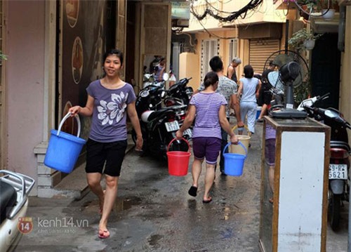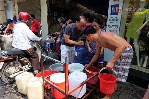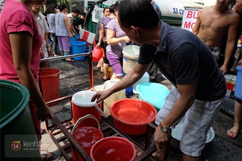 Theo ông Đại, từ hôm mất nước sạch, ngày nào gia đình ông cũng phải bỏ cả trăm nghìn đồng mua nước bình để nấu cơm, rửa rau, sinh hoạt. “Mùa hè oi bức, nóng không thể chịu được, gia đình tôi lại phải phóng xe cả chục cây số sang nhà ông bà ngoại ở đường Lạc Long Quân (quận Tây Hồ) để tăm rửa, giặt quần áo nhờ. Mất điện chúng tôi còn chịu được chứ mất nước sạch thì khổ lắm”, ông Đại tâm sự.