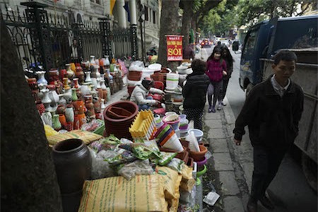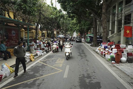 hè đoạn đầu phố Lý Nam Đế bị chiếm dụng hoàn toàn để buôn bán gốm sứ.