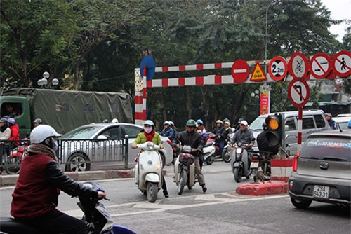 trong thời gian dài. Các phương tiện xe máy buộc phải đi lên vỉa hè để