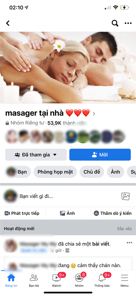 Hàng loạt group có đông thành viên với những lời mời chào dịch vụ massage tại nhà trong đợt dịch Covid-19
