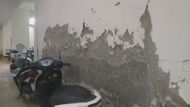 Không chỉ vấn đề thang máy, nhiều cư dân ở đây hiên nay đang phải khốn khổ vì những vấn đề an sinh như tình trạng tường nhà nham nhở vì bong tróc, nước ngấm từ tầng cao nhất xuống tận tầng hầm.