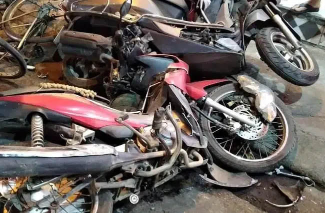 Vụ tai nạn khiến nhiều xe máy bị hư hỏng nặng.