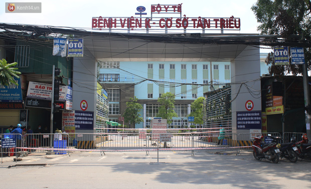 Đối diện khu phong toả là Bệnh viện K cơ sở Tân Triều, trước đó vào ngày 8/5, bệnh viện này bị phong toả do có 11 ca mắc Covid-19